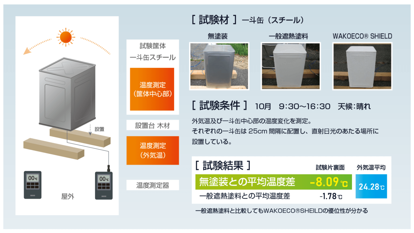 工場内の暑さ対策のため断熱塗料のワコーエコシールドを購入しました。塗装店に頼まず従業員が塗装作業を行いましたが、作業をするときに大きな問題はありませんでした。 塗装後はじめての夏をむかえましたが、工場内の室温は下がり、エアコンの効果も改善したので大変満足しています。